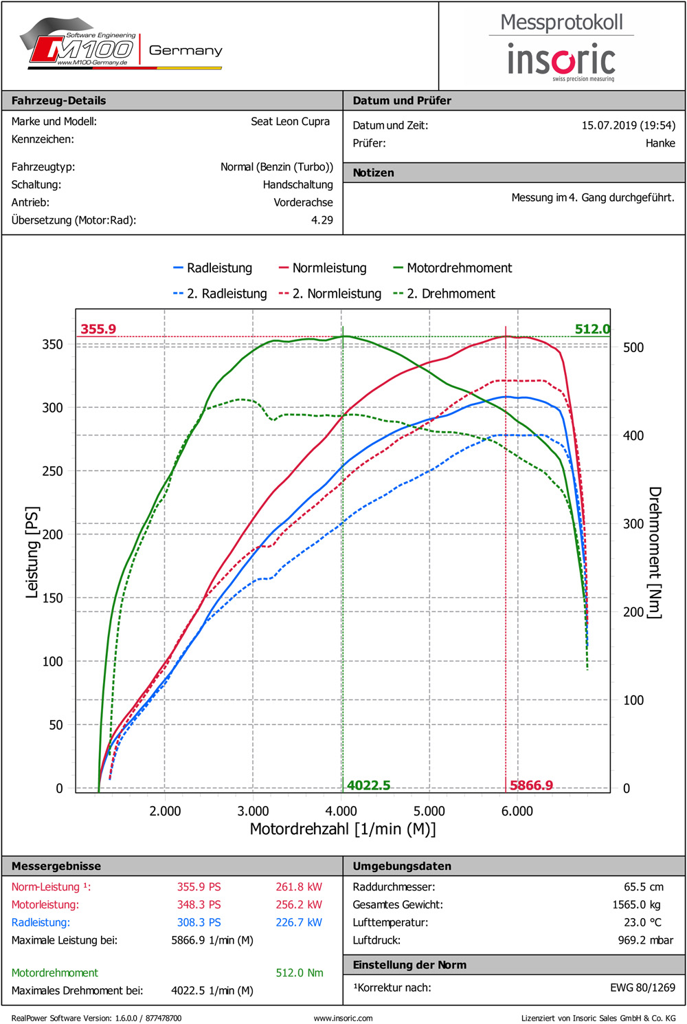 Insoric RealPower gehört somit bei Individualabstimmungen für uns als wichtiges Tool immer dazu. Zur Leistungstransparenz messen wir für unsere Kunden selbstverständlich auch Serienfahrzeuge mit und ohne Tuningmaßnahme.